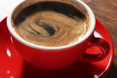 Czerwony filiżanka kawy smaczne, szczelnie-do góry