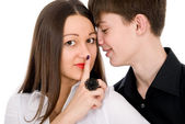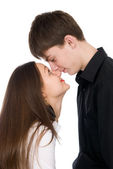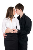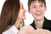 szczęśliwy młody piękny uśmiechający się para - na białym tle.