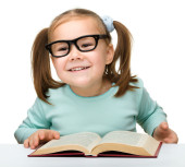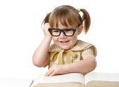 cute dziewczynka czyta książkę w okularach