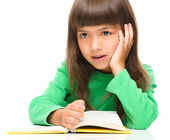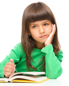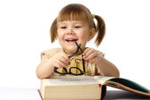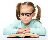 cute dziewczynka czyta książkę w okularach