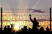 Zdjęcie "Sylwetka miasta za płotem " może być wykorzystywane do celów osobistych i komercyjnych zgodnie z warunkami zakupionej licencji Royalty-free. Obraz jest dostępny do pobrania w jakości wysokiej rozdzielczości do 5760x3840.