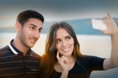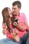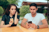 Dziewczyna ciekawy szpiegostwo chłopaka na Smartphone