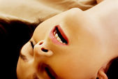 Czarno-białych fotografii piękna panienka z oczy zamknięte podczas makijażu