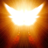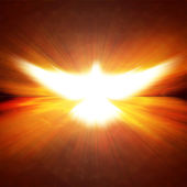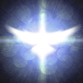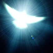 lśniący gołąb z promieniami na ciemnościach