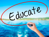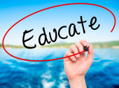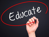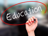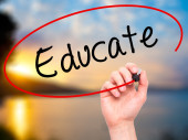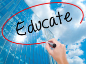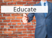 Człowiek w zapasie pismo edukację z czarnego markera na wizualne ekranie