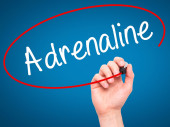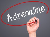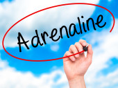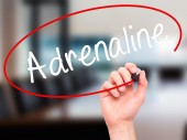 Człowiek w zapasie pismo adrenaliny z czarnego markera na wizualne ekranie