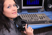 młoda dziewczyna w kurtkę i słuchawki gry syntezatora, iso