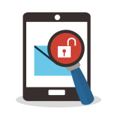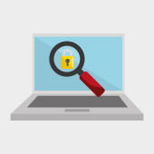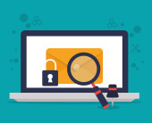 Ludzka ręka trzymać lupę znaleźć rasomware Cryptolocker