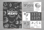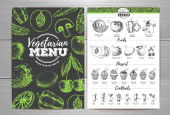 Vintage wegetariańskie menu Projekt. Świeże owoce szkicu