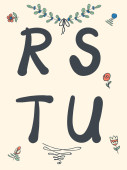 Wiosenny alfabet wektorowy z liter kwiatów R, S, T, U