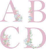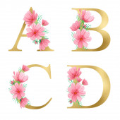 Wiosenny alfabet wektorowy z liter kwiatów A, B, C, D