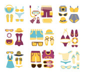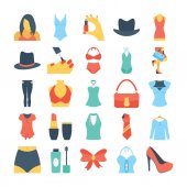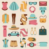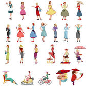 Zestaw znaków retro dziewczyny, pięknych młodych kobiet noszenie sukienki vintage wektor kolorowe ilustracje