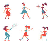 Zdjęcie "Zestaw znaków retro dziewczyny, pięknych młodych kobiet noszenie sukienki vintage wektor kolorowe ilustracje" może być wykorzystywane do celów osobistych i komercyjnych zgodnie z warunkami zakupionej licencji Royalty-free. Obraz jest dostępny do pobrania w jakości wysokiej rozdzielczości do 5760x3840.
