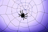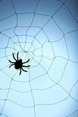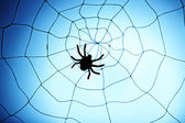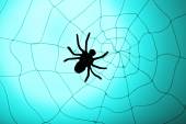 pajęczyna z pająk na niebieskim tle. Ilustracja wektorowa