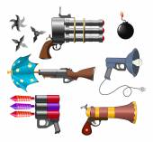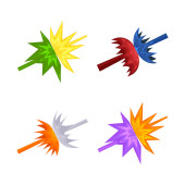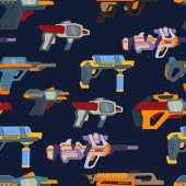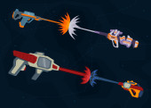 Strzelanie z broni przestrzeni. Laser shot. Wybuch, opozycja dwóch futurystycznych rodzajów broni. Ilustracja wektorowa w stylu cartoon.