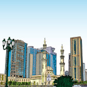 Zdjęcie "Ręcznie rysowane szkic Meczet z drapaczy chmur w dzielnicy Dubai Marina, Zjednoczone Emiraty Arabskie. Ilustracja, wektor. " może być wykorzystywane do celów osobistych i komercyjnych zgodnie z warunkami zakupionej licencji Royalty-free. Obraz jest dostępny do pobrania w jakości wysokiej rozdzielczości do 5760x3840.