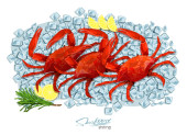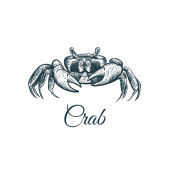 Krab na kostki lodu w stylu cartoon. Projektowanie produktu owoce. Mieszkańca dzikość podwodnego świata. Owoce jadalne morza. Ilustracja wektorowa