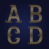 Wektor graficzny alfabet w zestaw A,B.C,D, stylem Art Deco złoty kolor