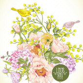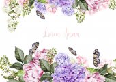 Akwarela wiosna z życzeniami vintage kwiatowy bukiet z róż
