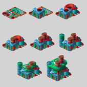 Zestaw płytek podłogowych z teksturą drewna Piła na białym tle na białym tle nacięcie. Ideę ścieżki ogrodowe wykonane z tartaku odpadów. Wirydarz-do góry ilustracja kreskówka wektor.