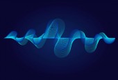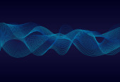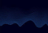 Abstrakcyjna falistość cząstek powierzchni na ciemnym niebieskim tle. Soundwave cząstek. Muzyka streszczenie tło z siatki 3D. wektor eps10