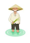 Cartoon charakter pływający sprzedawca rynku wiosła łodzi.
