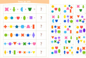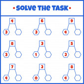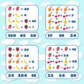 Zestaw gier matematycznych. Matematyka gra edukacyjna dla dzieci. Matematyczne zadanie liczenia. Zestaw gier matematycznych ze zdjęciami dla dzieci. Karta pracy edukacyjnej.