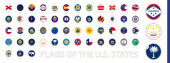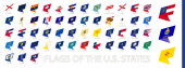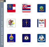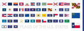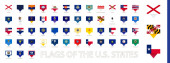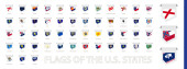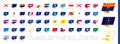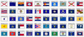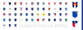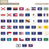 Zestaw znaczników pocztowych, flagi stanowe USA. Flagi posortowane według alfabetu.