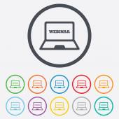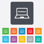 seminarium laptopa znak ikona. Notatnik tkanina badanie.