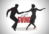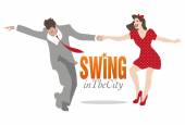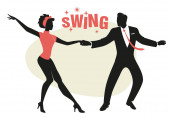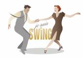 Zabawna para w retro ubrania tańczące jazz, swing lub rock and roll