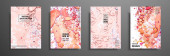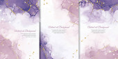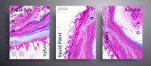 Kolekcja akrylowych zaproszeń ślubnych z kamiennym wzorem. Mineralne pokrywy wektorowe z efektem marmuru i miejsce na tekst, różowy, niebieski i kolor wina. Przeznaczone do kartek okolicznościowych, broszur itp..