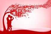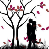 Silhouette of a couple in love kissing under a love tree.Vector illustration.