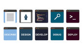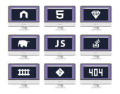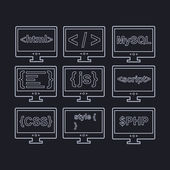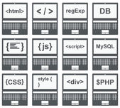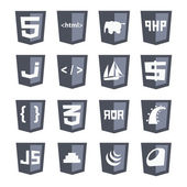 kolekcja web rozwoju tarczy znaków - html5 css3 javascript na białym tle okrągły ikony