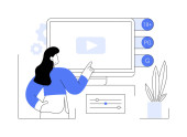 Wideokonferencje pojedyncze ilustracje wektora kreskówek. Ludzie rozmawiający za pomocą czatu wideo, inteligentne klasy, wizualizacje danych, szkolenia online, chmurowe systemy komunikacji wektorowej kreskówka.