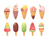 Zdjęcie "Stożki lodowe i lody o różnych smakach, polewy lodowe i desery lodowe. Lody deser żywności w czekoladzie truskawka i wanilia szyby i chipsy Wektor ilustracja część 3 z 3" może być wykorzystywane do celów osobistych i komercyjnych zgodnie z warunkami zakupionej licencji Royalty-free. Obraz jest dostępny do pobrania w jakości wysokiej rozdzielczości do 5760x3840.