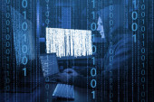 Kod binarny w przestrzeni cyfrowej. 1s i 0s na czarnym tle
