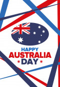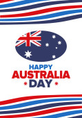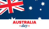 Dzień Australii. Narodowe szczęśliwe święto, obchodzone corocznie w 26 stycznia. Australijskie elementy patriotyczne. Sylwetka kangura. Plakat, kartka, baner i tło. Ilustracja wektora