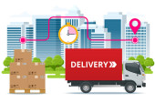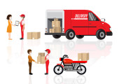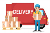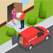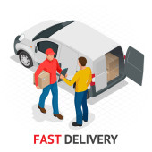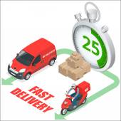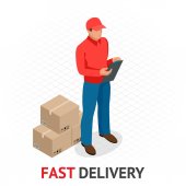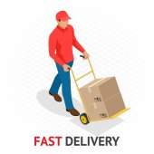 Free delivery, Fast delivery, Home delivery, Free shipping, 24 hour delivery, Delivery Concept, Express Delivery, delivery man. Flat 3d vector isometric illustration