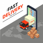 Zdjęcie "Koncepcja serwisu izometryczne dostawy. Szybka dostawa samochodu, szybka dostawa motobike, człowiek stanie, stoper. Wektor 3d izometryczny ilustracja" może być wykorzystywane do celów osobistych i komercyjnych zgodnie z warunkami zakupionej licencji Royalty-free. Obraz jest dostępny do pobrania w jakości wysokiej rozdzielczości do 5760x3840.