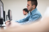 starcie biznesu, programista pracuje na komputerze stacjonarnym