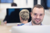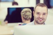 starcie biznesu, programista pracuje na komputerze stacjonarnym