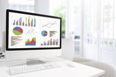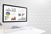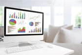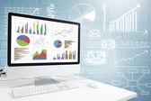 Nowoczesny komputer z klawiatury i myszy na tabeli Wyświetlono wykresy