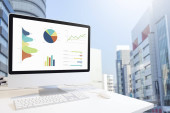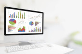 Zdjęcie "Nowoczesny komputer z klawiatury i myszy na tabeli Wyświetlono wykresy " może być wykorzystywane do celów osobistych i komercyjnych zgodnie z warunkami zakupionej licencji Royalty-free. Obraz jest dostępny do pobrania w jakości wysokiej rozdzielczości do 5760x3840.