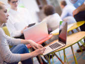 starcie biznesu, kobieta pracuje na komputerze stacjonarnym