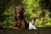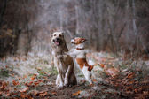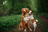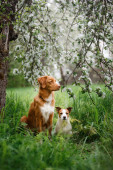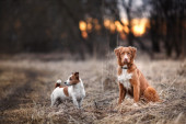 Dog Jack Russell Terrier and Dog Nova Scotia Duck Tolling Retriever walking in the park