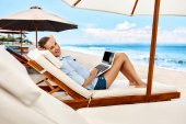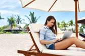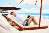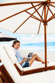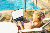 Freelance Work Concept. Freelancer Woman Typing, Using Laptop Computer