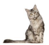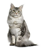 Zdjęcie "Maine coon kot, 1 rok stary, siedząc w tle" może być wykorzystywane do celów osobistych i komercyjnych zgodnie z warunkami zakupionej licencji Royalty-free. Obraz jest dostępny do pobrania w jakości wysokiej rozdzielczości do 5760x3840.