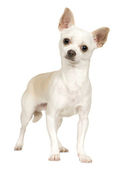 łyse chihuahua, 5 miesięcy, stojąc z przodu białe tło