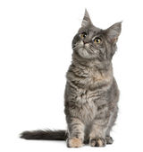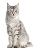 Zdjęcie "Maine coon kot, 1 rok stary, siedząc w tle" może być wykorzystywane do celów osobistych i komercyjnych zgodnie z warunkami zakupionej licencji Royalty-free. Obraz jest dostępny do pobrania w jakości wysokiej rozdzielczości do 5760x3840.