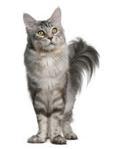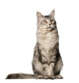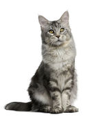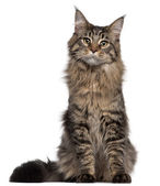Zdjęcie "Maine coon kot, 1 rok stary, siedząc w tle" może być wykorzystywane do celów osobistych i komercyjnych zgodnie z warunkami zakupionej licencji Royalty-free. Obraz jest dostępny do pobrania w jakości wysokiej rozdzielczości do 5760x3840.